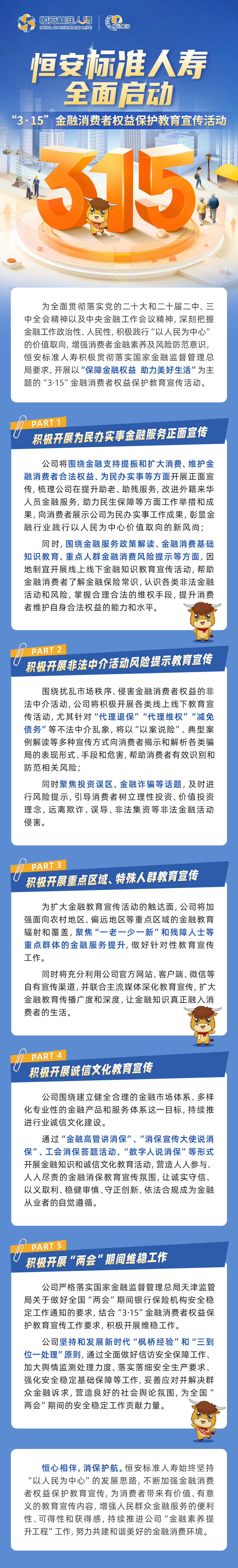恒安標準人壽積極貫徹落實(shí)國家金融監督管理總局要求,開(kāi)展以“保障金融權益 助力美好生活”為主題的“3·15”金融消費者權益保護教育宣傳活動(dòng)。